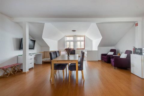 A panzióban 6 erkély kapcsolatos szoba van. A 3 tetőtéri szoba dunai panorámás. A szobákban fürdőszobák is vannak.