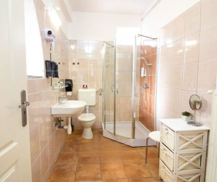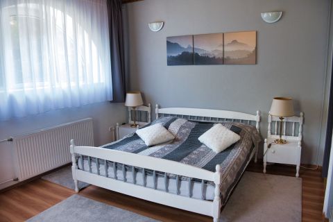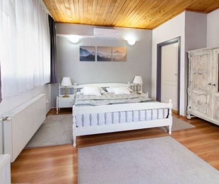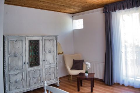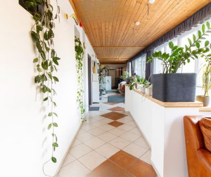 A tulajdonosok számára egy különálló, 125 m²-es, háromszobás lakrész lett kialakítva, amely ideális otthont biztosít az üzemeltetők számára.