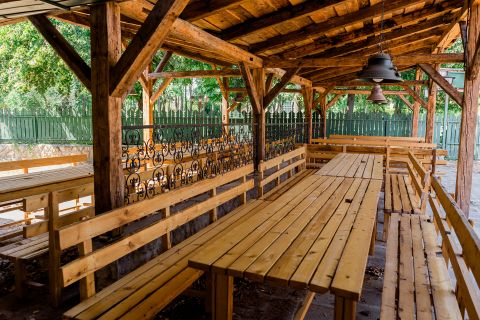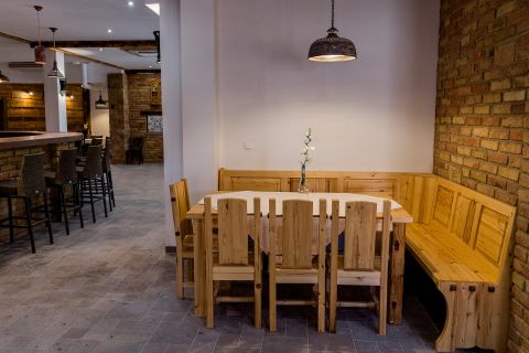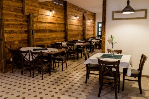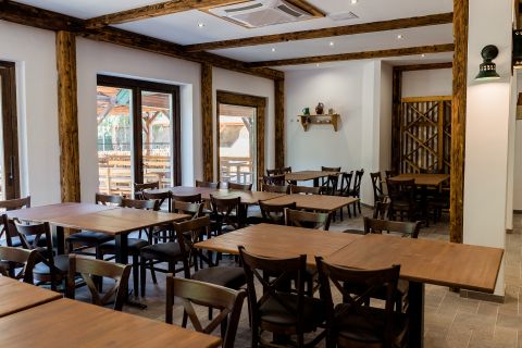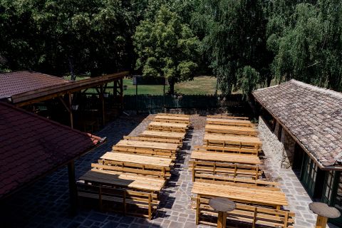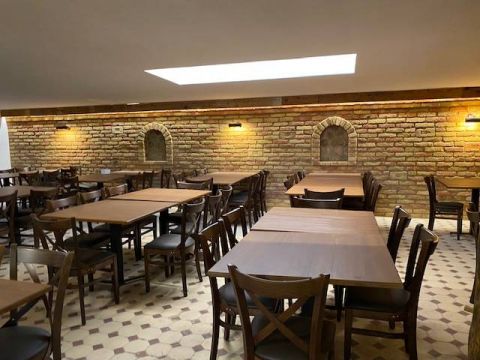 teljesen felszerelt étterem konyhával, raktárral, sörkert-terasszal