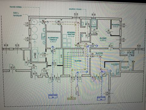háromszintes épület: alsó szint 1431 m², földszint 370 m², tetőtér 400 m²