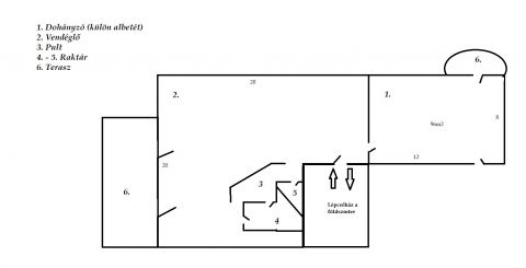 A földszinten és részben az 1. emeleten elhelyezkedő albetét legutóbb étteremként funkcionált, ehhez szervesen kapcsolódik a 110 nm alapterületű presszó, mely az emeleten helyezkedik el.