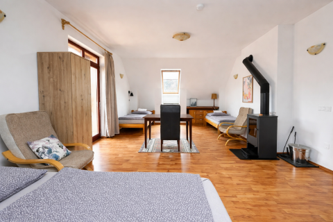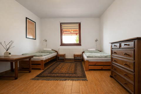 The guesthouse is suitable for ACCOMMODATING UP TO 30 PEOPLE. The design allows for the comfortable reception of larger families, groups of friends, corporate events, camps.