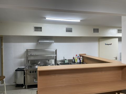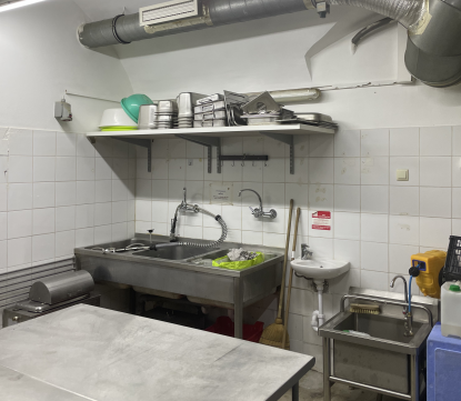Az üzlethelyiség hivatalos területe 89m², plusz 4 m² tároló galéria tartozik még hozzá a bejárattal szemben, ami iroda céljára is hasznosítható. A helyiség a következőket tartalmazza: Egy vendégtér kiszolgáló pulttal, amely kényelmesen befogad 35-40 főt, egy 30m² gépesített melegkonyha. A melegkonyha működtetéséhez a meglévő berendezések már rendelkezésre állnak, az elszívó-szellőztető rendszer ki van építve, előkészítőm² helyiség és a mosogató is gépesített. Két vendégmosdó, plusz a személyzet számára külön öltöző és mosdó is kialakításra került.