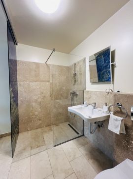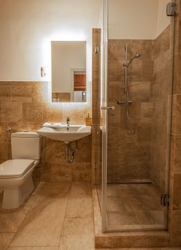 Mindegyik szobához tartozik egy igényes, zuhanyzóval ellátott fürdőszoba.