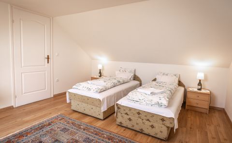 első emelet- 2 szoba fürdővel, 1 közösségi helyiség Sószobával