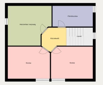 A 90-es évek elején épült, masszív szerkezetű családi ház két lakószinttel és teljesen alápincézett kialakítással rendelkezik. A pince szinten négy helyiség kapott helyet, köztük a garázs és a kazánház, ahol gáz- és vegyes tüzelésű kazán is biztosítja a fűtési lehetőségeket. Az alsó szinten a tágas előszoba után egy impozáns hall fogad, innen nyílik a 30 négyzetméteres nappali, az étkező és a konyha kamrával. Ugyanitt található egy hálószoba, egy fürdőszoba és egy külön wc is. A nappaliból egy 17 négyzetméteres fedett teraszra léphetsz ki, ahonnan a kert nyújt pihentető kilátást. Az emeletre széles falépcső vezet, ahol két nagyobb szoba került kialakításra, valamint egy kényelmes, világos fürdőszoba is szolgálja a család mindennapjait.
