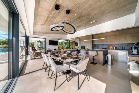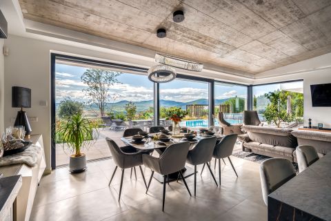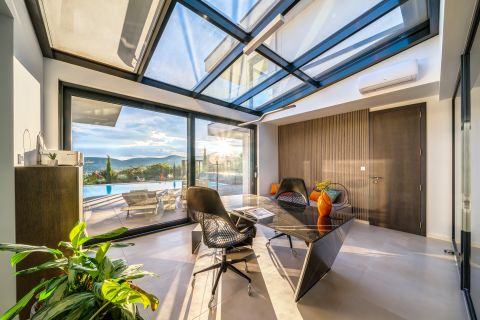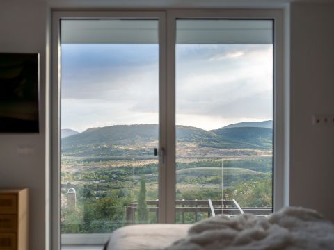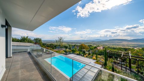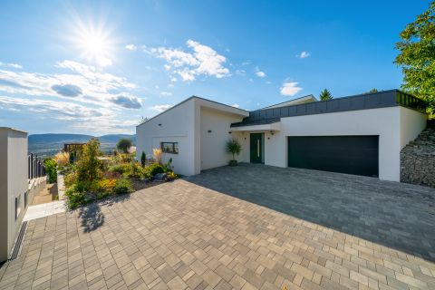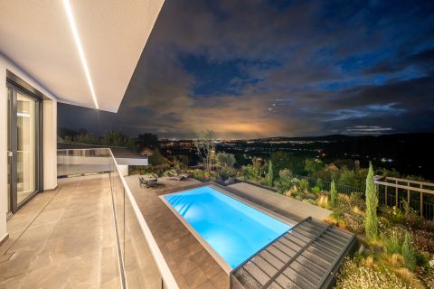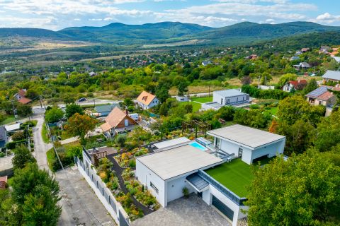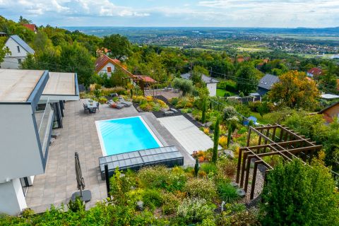 A tágas terek, a medence, a kétállásos garázs, a hőszivattyús padlófűtés és mennyezethűtés, valamint a dél–nyugati fekvésű, zavartalan kilátás mind azt szolgálják, hogy itt a mindennapok álomszerűek lehessenek.