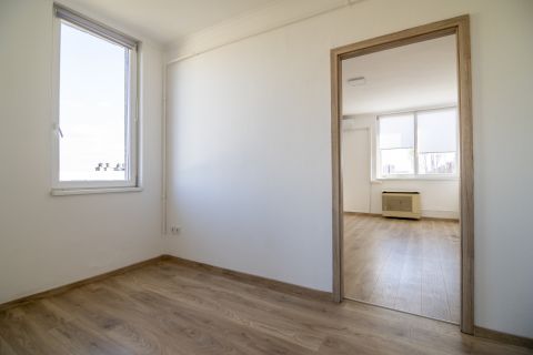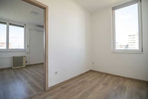 Rendkívül ideális az elrendezése, hiszen két szobája teljes értékű és a középső félszobából nyílik.