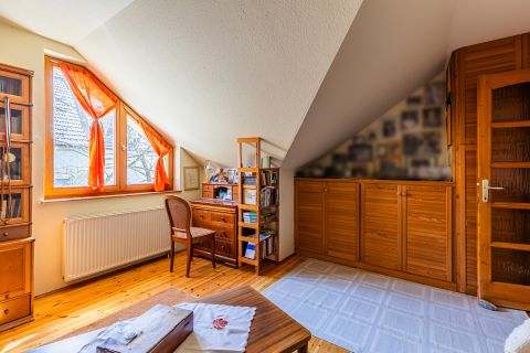 Veresegyház Öreghegy városrészében kínáljuk eladásra ezt a rendkívül vonzó, 160 négyzetméteres családi házat, amely tökéletes választás lehet családosok számára. Az ingatlan egy 809 négyzetméteres telken helyezkedik el, és öt szobával, valamint két fürdőszobával rendelkezik, így bőséges teret biztosít a kényelmes életvitelhez. A ház jó állapotú, szigetelt, rendszeresen karbantartott, és a modern életvitelhez szükséges kényelmi elemeket is tartalmaz, mint például a gáz (cirko) fűtés és a klímaberendezés. Az ingatlan egyedi tervezésének köszönhetően világos és barátságos légkört teremt, amely tökéletes helyszín lehet a családi együttlétekhez. A beépített bútorok és szekrények nemcsak esztétikai szempontból emelik az ingatlan értékét, hanem praktikus megoldásokat is kínálnak a tárolásra. A házhoz tartozik egy garázs is, amely egy autó számára biztosít védett parkolási lehetőséget. A környék ellátottsága kiváló, a közeli üzletek, iskolák és óvodák mindössze pár percnyi távolságra találhatók, így a mindennapi élet könnyedén megoldható. Öreghegy csendes, biztonságos, és az egyik legnépszerűbb része Veresegyháznak, ami különösen vonzó lehet a gyermekes családok számára. A környék felkapott, hiszen a természet közelsége és a nyugodt életvitel kombinációja ideális környezetet teremt a családok számára. A közlekedés szempontjából is kedvező helyzetben található az ingatlan, hiszen a helyi buszjáratok gyors és kényelmes eljutást biztosítanak a város központjába és a közeli településekre is. Az autóval közlekedők számára pedig könnyen megközelíthetőek a főbb közlekedési csomópontok, így Budapest és a környező települések is gyorsan elérhetőek. Óvoda, bölcsőde pedig a szomszéd utcában található. Ez a családi ház nemcsak egy otthon, hanem egy életstílus megtestesítője is, ahol a család minden tagja megtalálhatja a számításait. Ha bármilyen kérdése van az ingatlannal kapcsolatban, ne habozzon keresni minket bizalommal. Az Ön elégedettsége a legfontosabb számunkra, és szívesen segítünk minden információval, ami szükséges a döntéshez.
