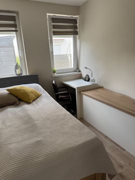 A lakás amerikai konyhás nappalival és külön nyíló hálószobával rendelkezik. A fürdőszoba praktikus kialakításának köszönhetően mosó- és szárítógép is kényelmesen elhelyezhető. A műanyag ablakok és ajtók redőnnyel, valamint szúnyoghálóval felszereltek.