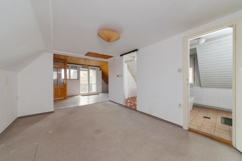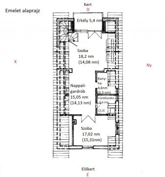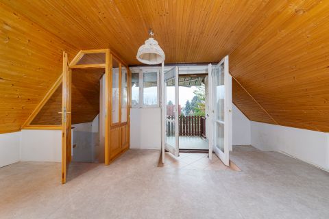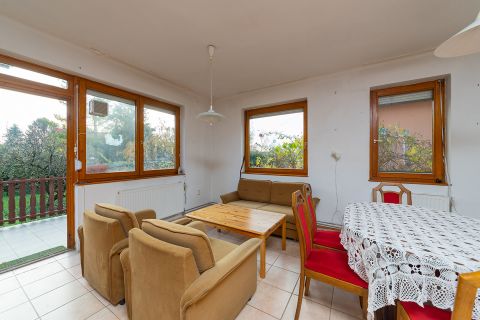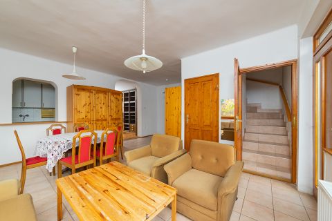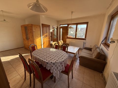 A nappaliból nyílik a kényelmes lépcsőház, innen jutunk fel az emeletre. Itt egy nagy nappali (könnyedén zárható szobává alakítható), egy konyha, étkező-nappali, egy fürdőszoba és egy nagy szoba kapott helyet. Az erkélyről szép kilátás nyílik a kertre és a környékre. A fűtést és a használati meleg vizet turbós kombi cirkó biztosítja. Igény esetén kis átalakítással kétgenerációs ingatlant kaphatunk. A ház alatt egy pince is kialakításra került, tárolásra kiválóan alkalmas. A homlokzat hőszigetelt, a tetőt cserép fedi. Telken belül két autóval kényelmesen parkolhatunk. A környék csendes, kertes házakkal beépített, buszmegálló rövid sétával elérhető, iskola, óvoda, orvosi rendelő, gyógyszertár, művelődési ház, bevásárlási lehetőség szintén a közelben található. Az ingatlan üres, tehermentes, rövid időn belül birtokba vehető.