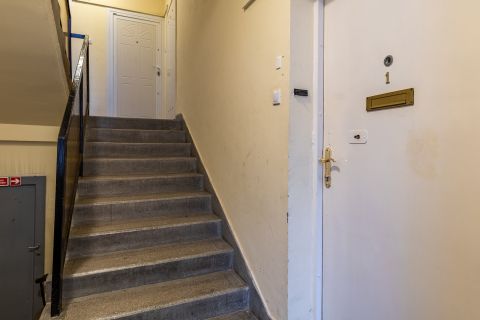 A lakás egy rendezett, jól karbantartott, több évtizede stabil lakóközösséggel rendelkező társasház földszintjén helyezkedik el.