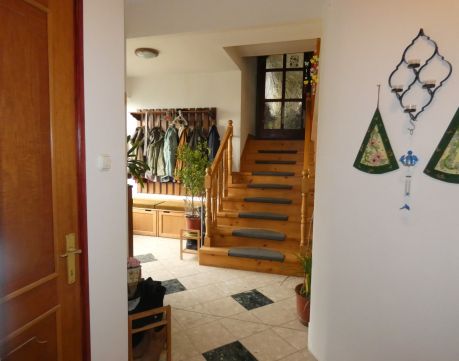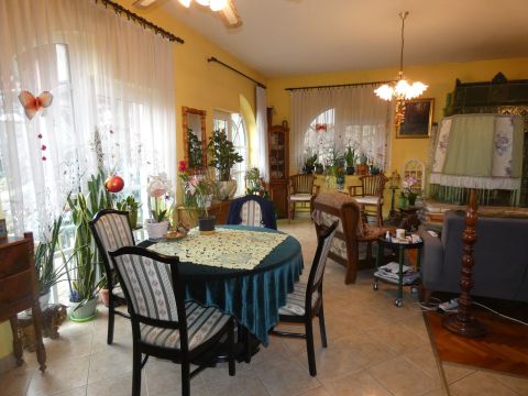 Pécs, ürögi rész elején eladó egy három szintes 2 generáció együttélésére alkalmas családi ház. A ház földszinti részén helyezkedik el a ház gépészeti berendezése, kamra, boltíves pince, egy beállásos garázs és egy vizes blokk zuhanyzóval. A felső szinten lévő lakások megközelíthetők a belső lépcsőházon keresztül vagy a külső lépcsősoron is. Az első szinten lévő lakás konyha, étkező kis nappali, hálószoba kialakítású. Itt kapott még helyet egy vendégszoba és két fürdőszoba és mosdó is. Mindkét szobához kapcsolódik terasz, amelyről szép kilátás nyílik a szembe lévő erdős részre. A közös előtérből egy lépcső vezet fel a 2. szinten lévő lakásba. Itt egy hatalmas nappaliba léphetünk be, amelynek benapozottságáról a nagy ablakok gondoskodnak. A nappaliban lévő kandalló nem csak hangulatot, de kellemes meleget is ad. A konyha átadó ablakon keresztül kapcsolódik az étkezőhöz. Félemeleti részen helyezkedik el a két hálószoba( egyik még befejezésre vár) gardrób, fürdőszoba és mosdó.