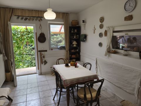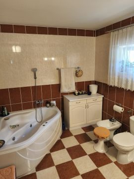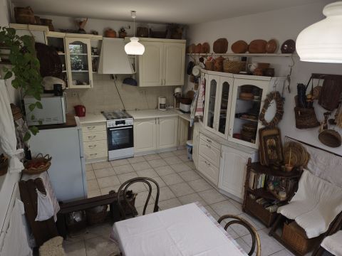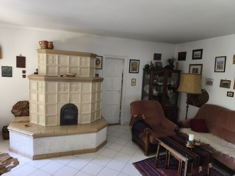 A házban padlófűtés ad meleget, amit vízteres cserépkályha, vagy gázkazán biztosít.