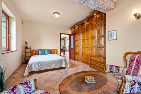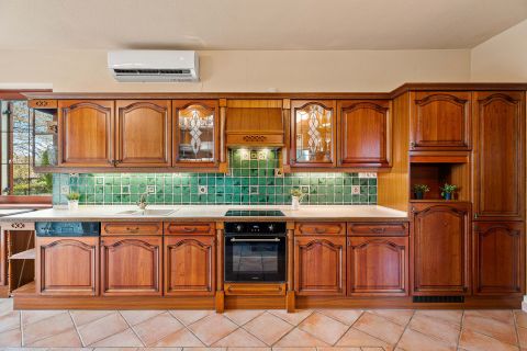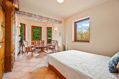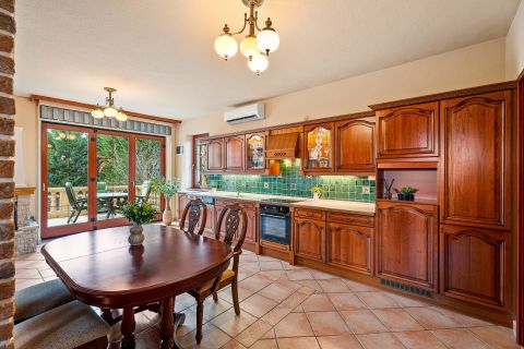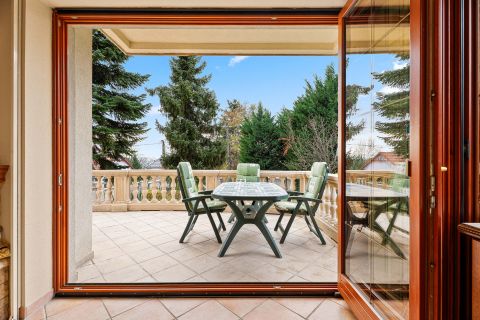 - A nappali hatalmas üvegfelületei rengeteg természetes fényt árasztanak be, a tágas terasz pedig ideális helyszínt biztosít családi összejövetelekhez vagy kikapcsolódáshoz kellemes, zöld környezetben.