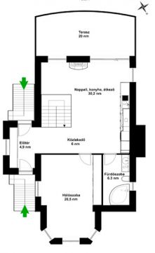 - 2 tágas, napfényes szoba saját terasszal, beépített szekrényekkel
