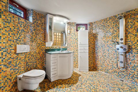 - Zuhanykabinnal felszerelt ablakos fürdőszoba wc-vel