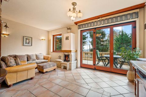 - Világos, amerikai konyhás nappali kandallóval, közvetlen teraszkapcsolattal