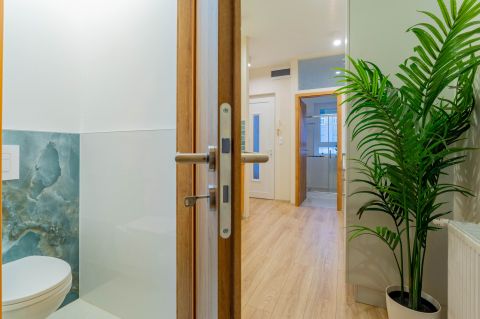 A felújítás során cserélve lett a teljes gépészet, csövek, hideg meleg burkolatok az alaprajz pedig úgy került kialakítására,hogy a lehető legjobb legyen a hely kihasználása. A beépített bútorok az ár részét képezik.