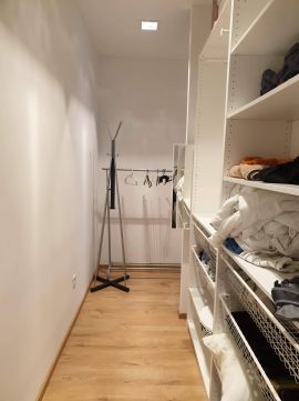 A hálószobában kialakításra került. egy kifejezetten praktikus gardrób szoba is.