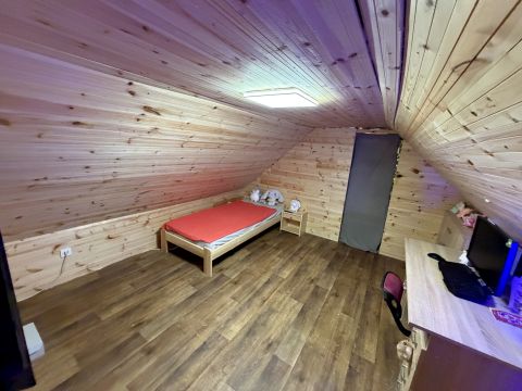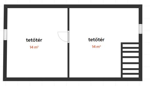 A házba belépve az előszobába lépünk, ahonnan nyílik a konyha, melyből lépcső visz fel a tetőtérbe, mely 2 szobát rejt.Az alsó szinten egy szobába lépünk az előszobából, melyből nyílik a nappali és egy fürdő/wc,