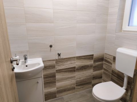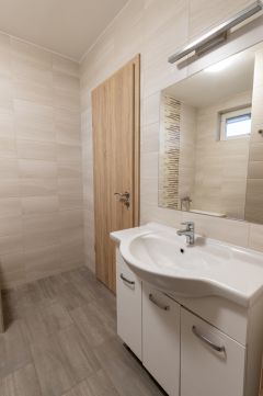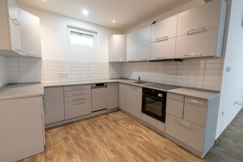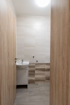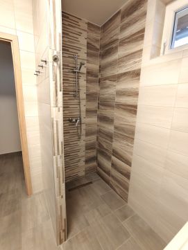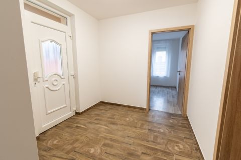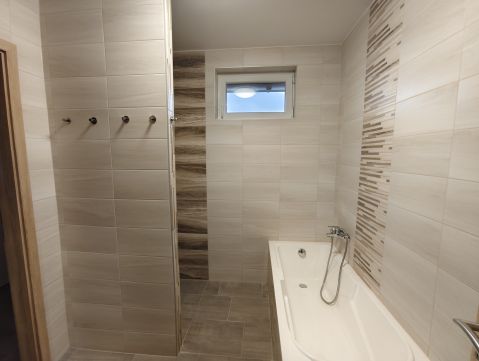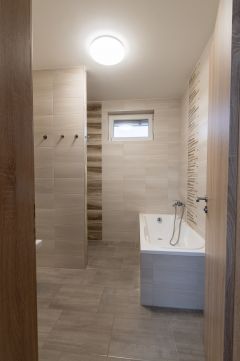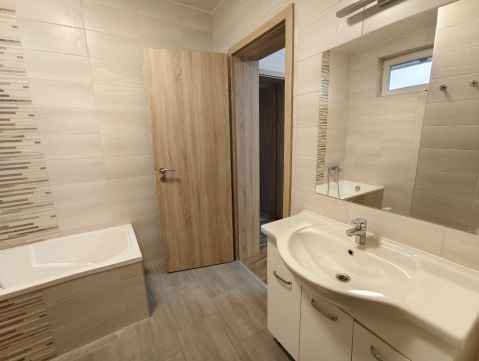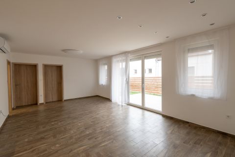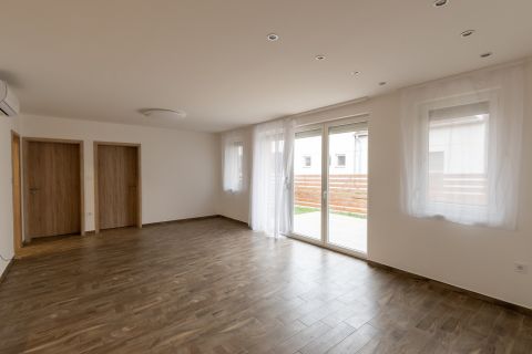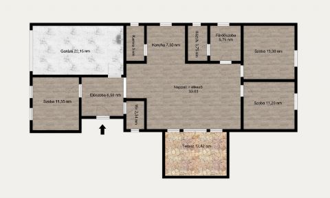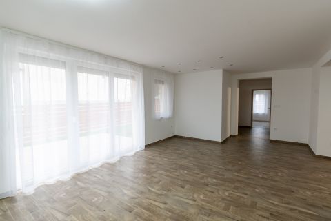 Az alapterület magában foglal többek között három hálószobát és egy tágas mérettel rendelkező fürdőszobát. A praktikusan kialakított háztartási helyiség biztosít teret a gépészet és a háztartási gépek számára.