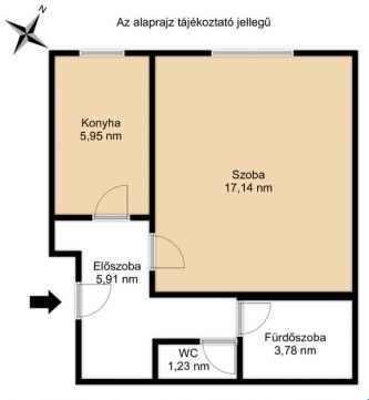A lakótér: alapterülete nettó 34 nm, 1 egész szobás (külön nyíló), előszobával, ablakos konyhával, közlekedővel rendelkezik. Kádas fürdőszoba (ablakos) és wc külön helyiségben. Minden helyiség külön a nyíló. ÁTALAKÍTÁSI lehetőségek: másfél szobássá vagy hálószoba + amerikai konyhás nappalira.