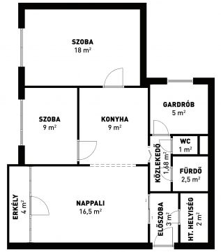 Nappali + 2 tágas hálószoba kényelmes elrendezésben