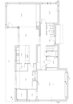 A földszint szíve a nagyvonalúan megnyitott nappali–étkező–konyha egység, ahol a háromrétegű, nagyméretű üvegfelületek természetes fényt és közvetlen kapcsolatot biztosítanak a terasszal és a kerttel. Ezek a nyitott terek ideálisak a család számára: közös étkezésekhez, beszélgetésekhez, ünnepekhez vagy akár baráti összejövetelekhez.