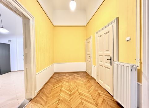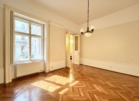A belváros szívében, a körúttól mindössze egy utcányira kínálunk megvételre egy tágas, 114 m²-es polgári lakást, amely adottságainak köszönhetően kiváló választás nagyvonalú otthonnak, értékálló befektetésnek, illetve igényes iroda vagy rendelő kialakítására is.