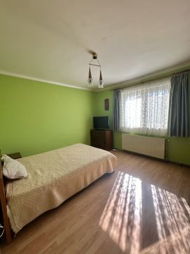 Ez a középpont szinte minden helység innen nyílik, az ízléses fehér konyha (kamrával), 2 hálószoba, a közlekedő, ahonnan további 1 háló, fürdőszoba és mellékhelység.