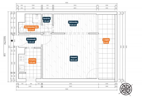 ✅ Jelenlegi felosztása: előszoba, konyha, nappali, gardrób, hálószoba, konyha, fürdőszoba-wc.