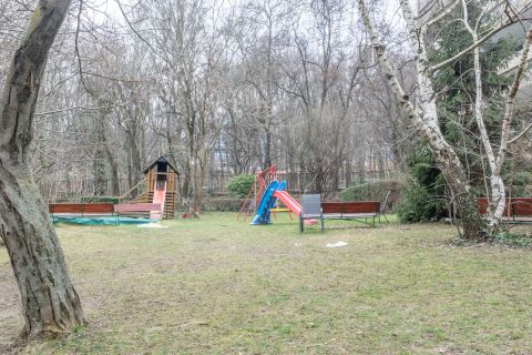 ➡️ A gondozott, közös kertben játszótér és külön padok is találhatók.