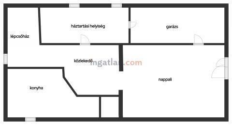 Földszint: Árnyas teraszról nyílik a főbejárat egy méretes nyappaliba. Innen átmehetünk a dupla garázsba, egy részben leválasztott közlekedőből a konyhába, a nagy méretű háztartási helyiségbe/ tárolóba, és egy vendég mosdóba. (A háztartási helyiségből is van ajtó a garázshoz. )