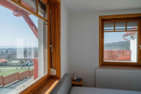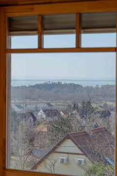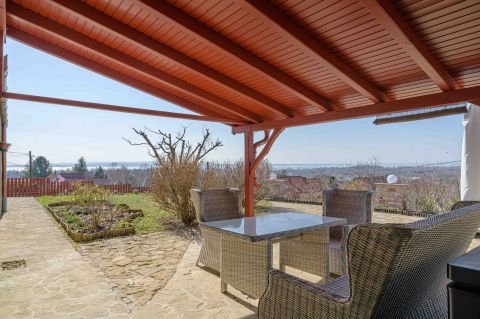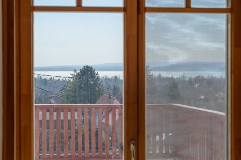 Az ingatlanról - már a kertből is - kivételesen széles kilátás tárul elénk az ezerarcú, ezerszínű tóra - előtérben a Szent Mihály kápolnával - és a Keszthelyi hegység egyik legszebb részére.