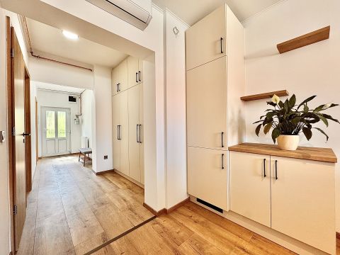 Az ingatlan teljeskörű felújításon esett át, mely során kiemelt figyelmet kapott a minőség és az időtálló megoldások alkalmazása. A felújítás az alábbiakat foglalta magában: a belső gázvezeték és gázmérő cseréje, a teljes villamos- és vízhálózat korszerűsítése, új külső nyílászárók és belső ajtók beépítése, valamint az összes fal- és padlóburkolat megújítása. A lakás friss festést és tapétázást kapott, továbbá álmennyezet került kialakításra 10 cm-es szigeteléssel a még jobb komfort érdekében.