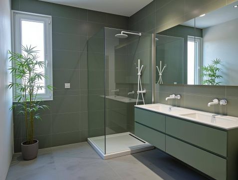 - épített zuhanyzó üvegfalal