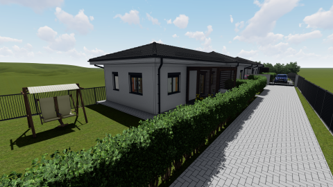 Nyírpazony-Kabalás csendes utcájában, komoly referenciával rendelkező kivitelező által megépített, 97 nm-es, nappali +3 szobás, szigetelt, műanyag nyílászárós, új építésű, kizárólag a gépkocsitárolónál kapcsolódó ikerház, 700 nm-es telken eladó.