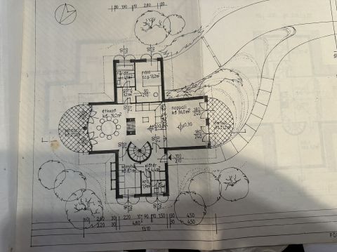 Az ingatlan igazi különlegessége a három terasszal rendelkező, egyedi kialakítású főépület, amely egy misztikus, egyenlő szárú kereszt alaprajz alapján épült.