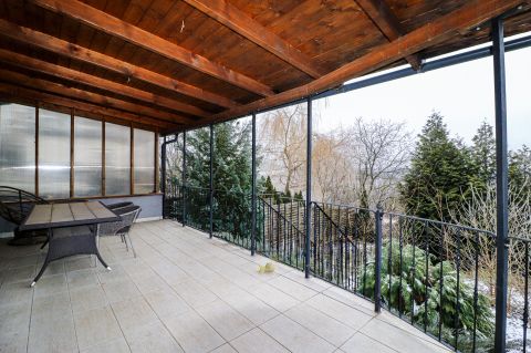 Az ingatlanhoz tartozik egy 24 négyzetméter területű garázs, és több gépkocsi számára térkövezett felszíni beálló, valamint a nagyméretű terasz alatt egy 33 négyzetméteres pince.