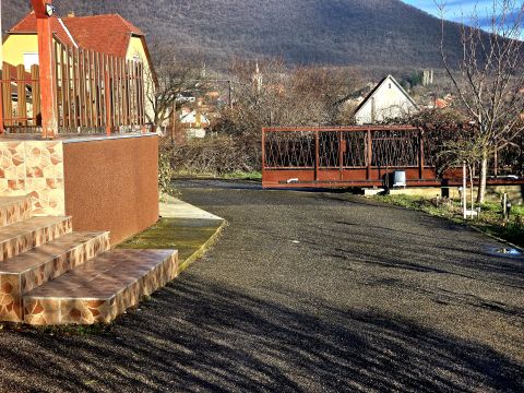 Az ingatlanon kamerarendszer működik, a ház környezete szépen parkosított.