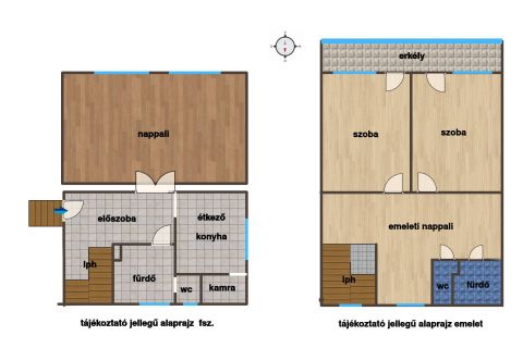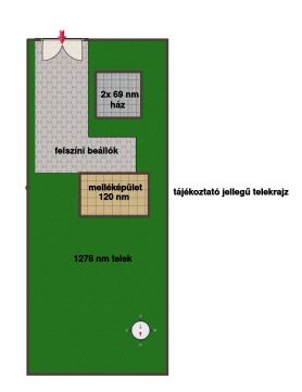 Az első egy két szintes családi ház 2x 86 nm-es alapterülettel, a másik egy 120 nm-es épület, melyben van műhely, garázs és tároló is.