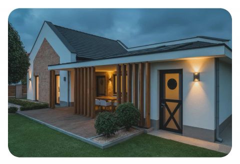 Masszív erős alapokra épülő, cseréppel fedett tető szerkezetű családi otthon.