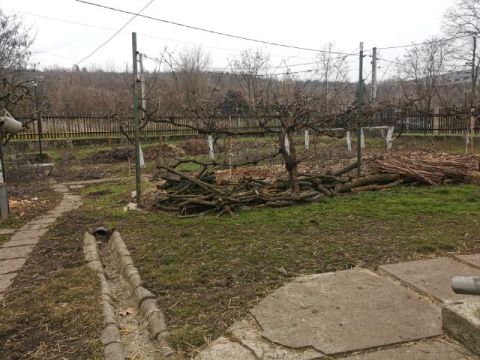 A kert gyümölcsfákkal és szőlővel ültetett.