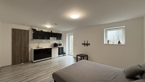 Ezen a szinten található egy külön bejáratú apartman rész is, saját fürdőszobával és WC-vel kiváló lehetőség vendégek, idősebb családtagok vagy akár bérbeadás számára.