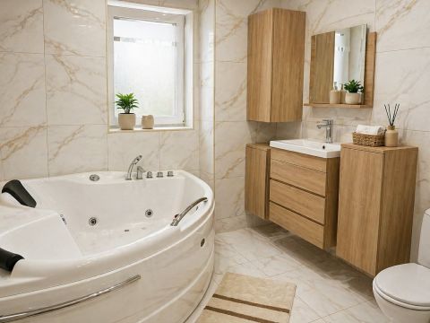 másik jacuzzis sarokkáddal felszerelt.