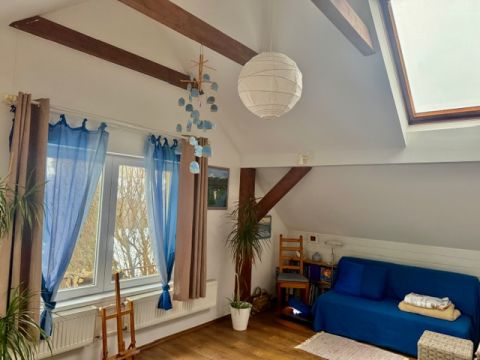 Az emeleten teljesen felszerelt világos lakrész található,