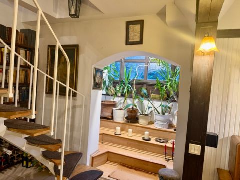 A háromszintes házban belső lépcsőn lehet a szintek között közlekedni.