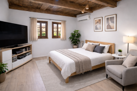 Az ingatlan két kényelmes méretű szobával, valamint egy fürdőWC helyiséggel, konyha- étkezővel, előszobával rendelkezik. A hűtés-fűtés támogatására három klíma áll rendelkezésre, melyek energiatakarékos működéssel biztosítják az otthon komfortját minden évszakban.