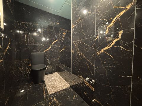 Jobbra található a fürdőszoba WC-vel, balra pedig két külön nyíló, kisebb méretű szoba kapott helyet.